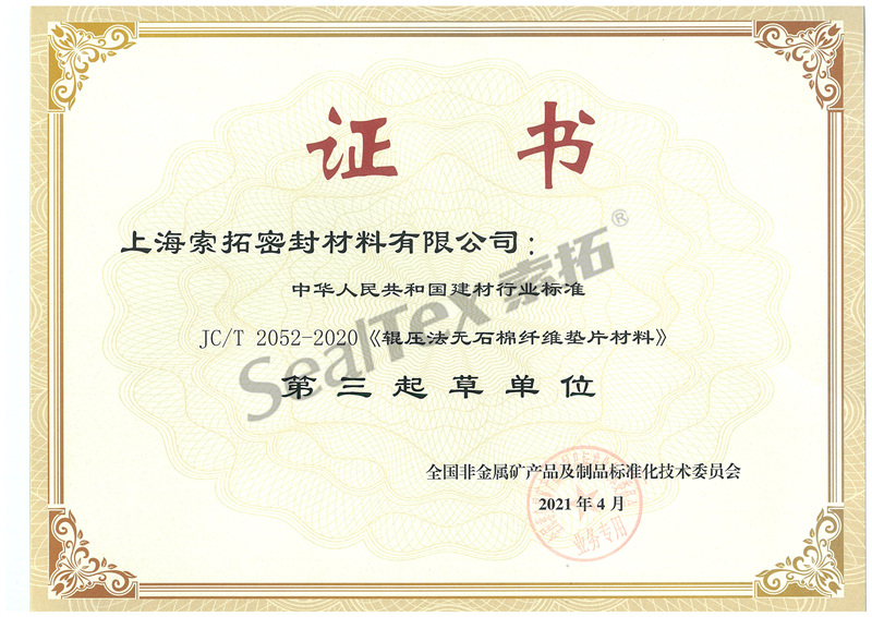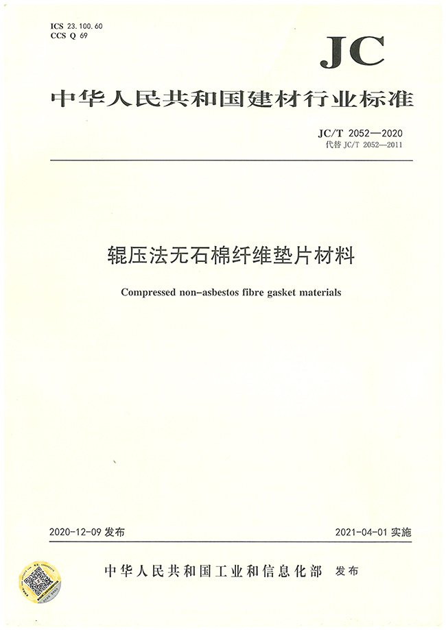 We participated in the drafting of JC/T2052 "Rolling method non-asbestos fiber gasket material" standard