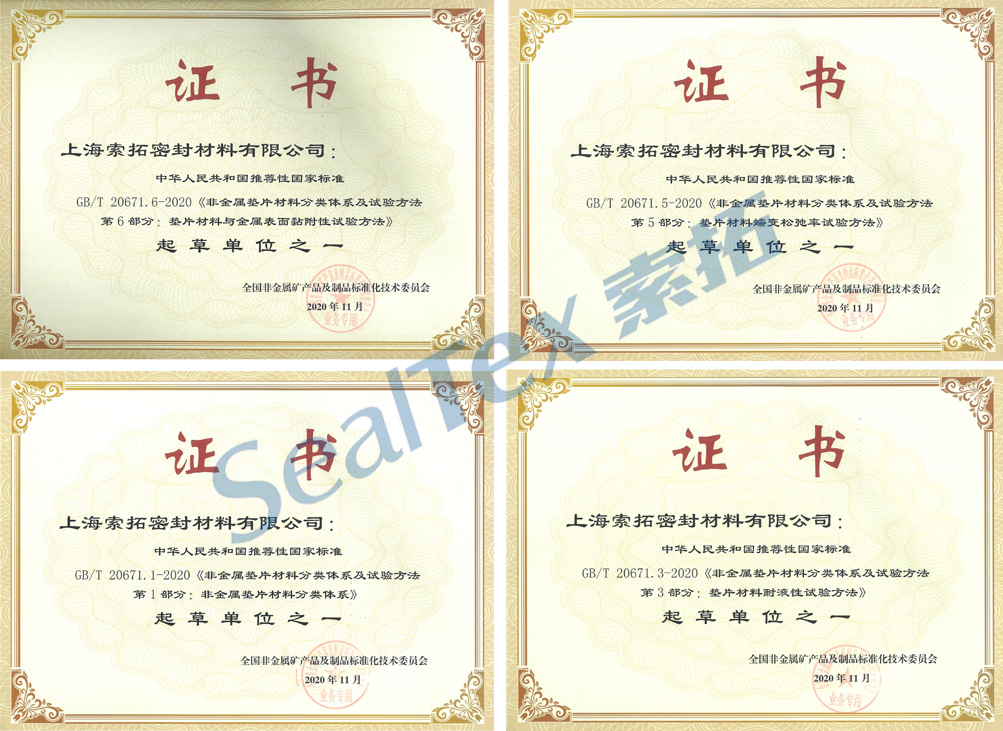 我司參與起草了GB/T 20671-2020《非金屬墊片材料分類體系及試驗方法》中的多個部分。