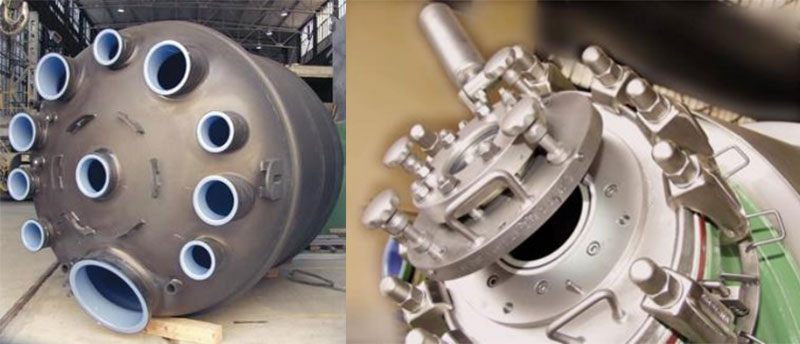 搪玻璃反應(yīng)釜法蘭表面不平整,需要特殊類型的包覆墊。如果選擇錯誤的密封墊片或扭矩維護(hù)不當(dāng)都可能導(dǎo)致搪玻璃設(shè)備的損壞。而反應(yīng)釜噴嘴或人孔處強(qiáng)腐蝕性介質(zhì)的微小泄漏也會滲入法蘭表面,破壞法蘭邊緣/末端的玻璃,進(jìn)而破壞容器本身,因此該處密封顯得尤為重要。