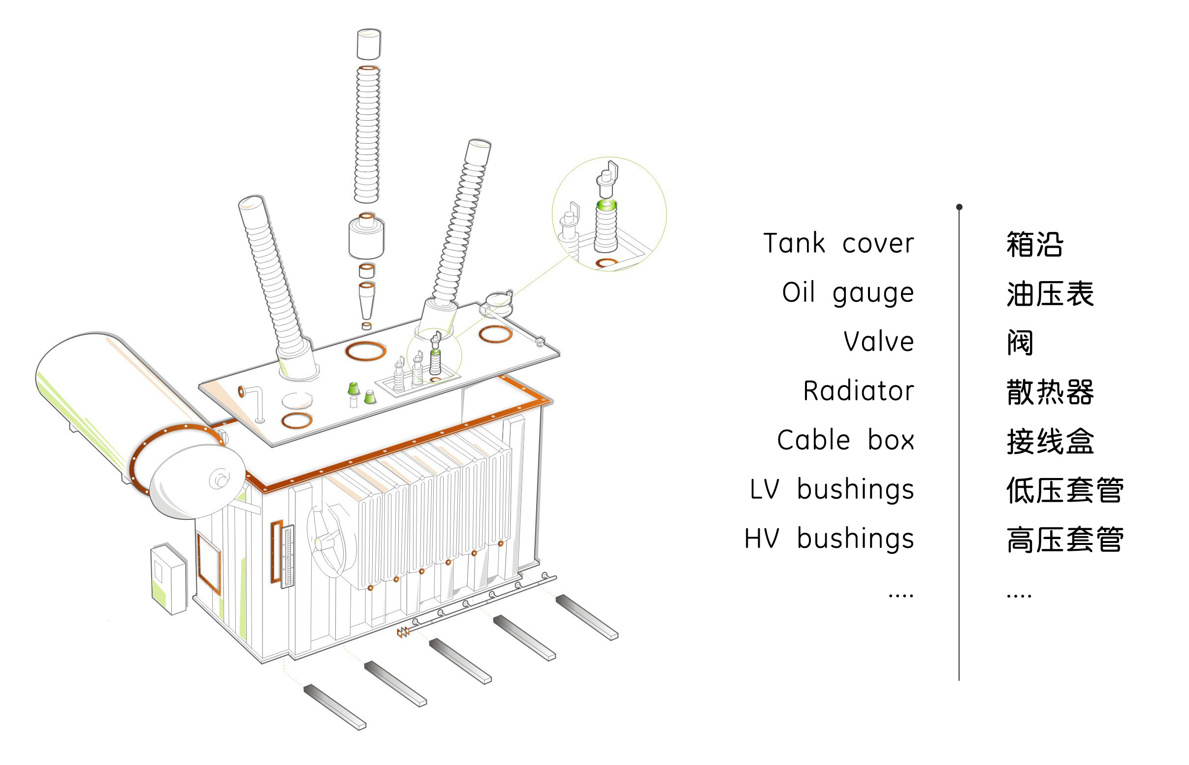 軟木密封墊廣泛應用在變壓器中,在法蘭與蓋板之間形成可靠的密封。這些區域需要能夠承受機械應力、熱膨脹以及耐變壓器油的材料。我們通過將軟木與橡膠結合提升了材料的柔韌性和耐受性,提供了一種可靠的解決方案,既能有效減少泄漏,又能長期保持結構完整性。